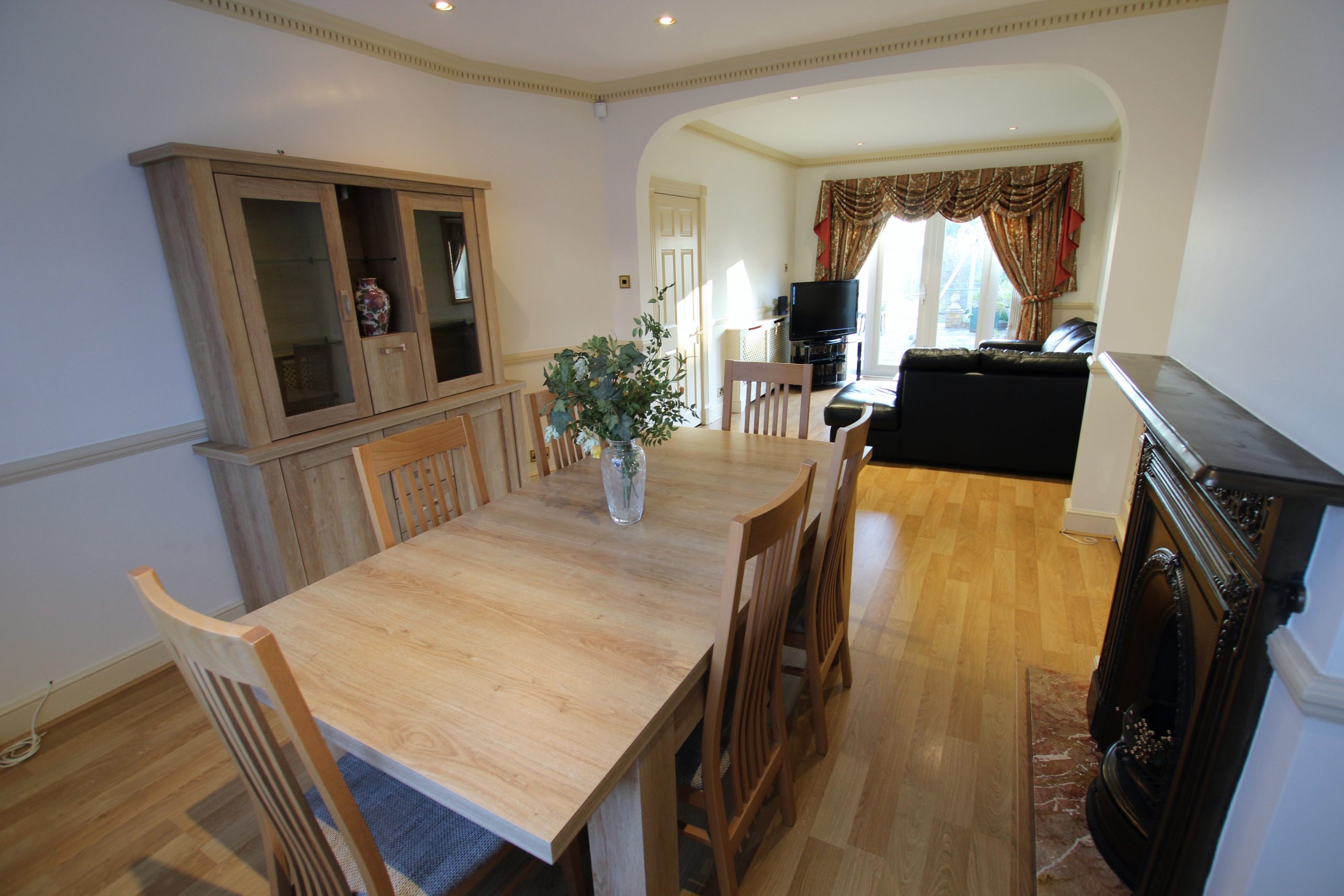 4 bed semi-detached house : through lounge, kitchen & diner, 3 bathrooms(2 new en suite bathrooms), garden, alarm, driveway.